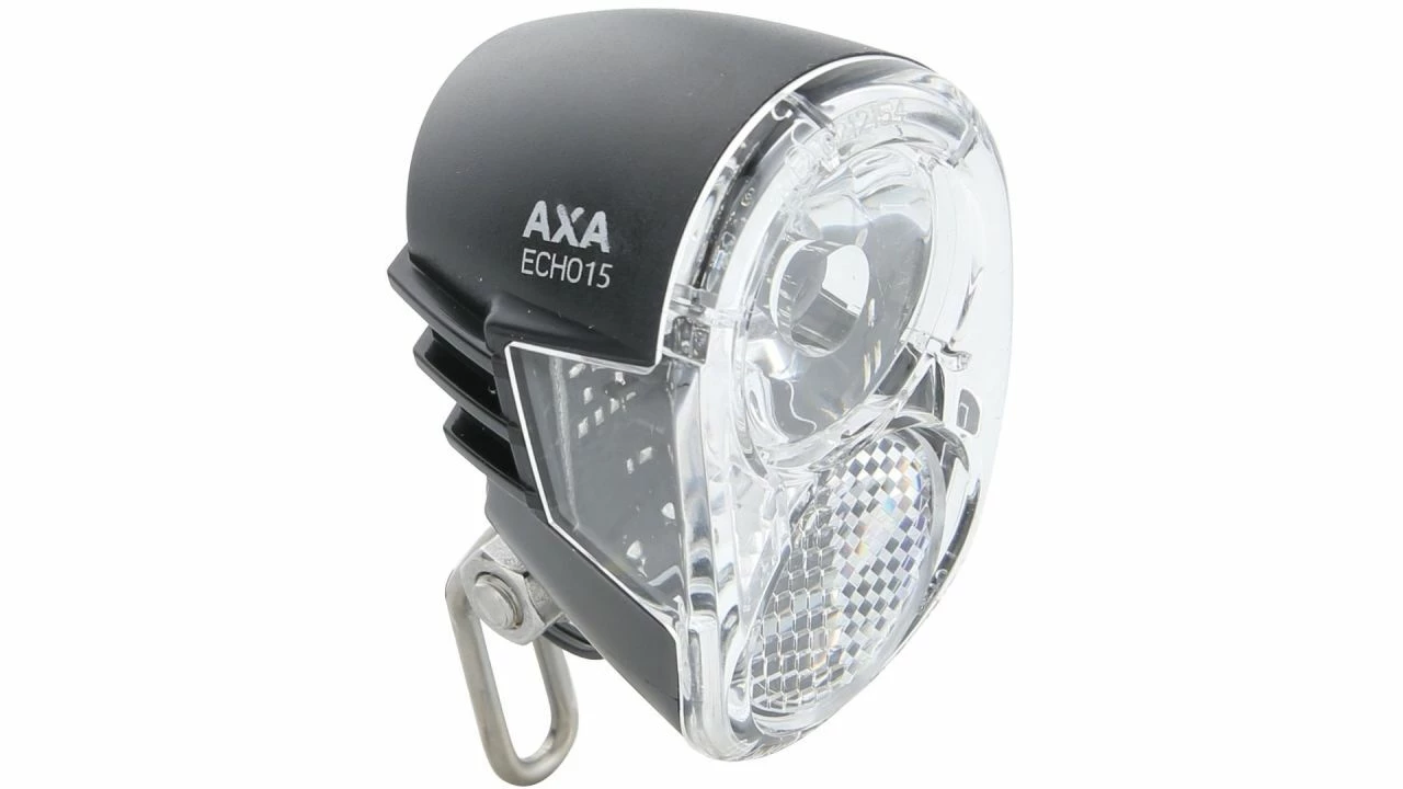 Beim Echo 15 von AXA handelt es sich um einen universellen Dynamo-Scheinwerfer mit einer Lichtleistung von 15 Lux. Mit dem Lichtkegel sehen sie selbst 35 m weit und sind für andere Verkehrsteilnehmer auf eine Entfernung von bis zu 2,25 km zu sehen.<br><br>Die Leuchte bietet eine Kombination aus einem integrierten Reflektor und einer optimalen Lichtverteilung. Beide Funktionen wurden speziell zur Steigerung Ihrer Sicherheit entwickelt, da Sie so für entgegenkommenden Verkehr besser sichtbar sind und selbst gute Sicht auf den vor Ihnen liegenden Weg haben. <br>Also Steady Auto-Version enthält Echo 15 darüber hinaus eine Standlicht-Funktion und eine Einschalt-Automatik. Somit leuchtet die Lampe auch im Stehen noch einige Minuten lang weiter und schaltet sich dank eines Hell-Dunkel-Sensors automatisch ein.<br><br>Der robuste Stahlhalter dieses Scheinwerfers ist für jeden Straßentypen geeignet. Um die Leuchte flexibel zu verbauen, lässt sich die Halterung auch entfernen bzw. an vorinstallierte Halterungen anpassen.