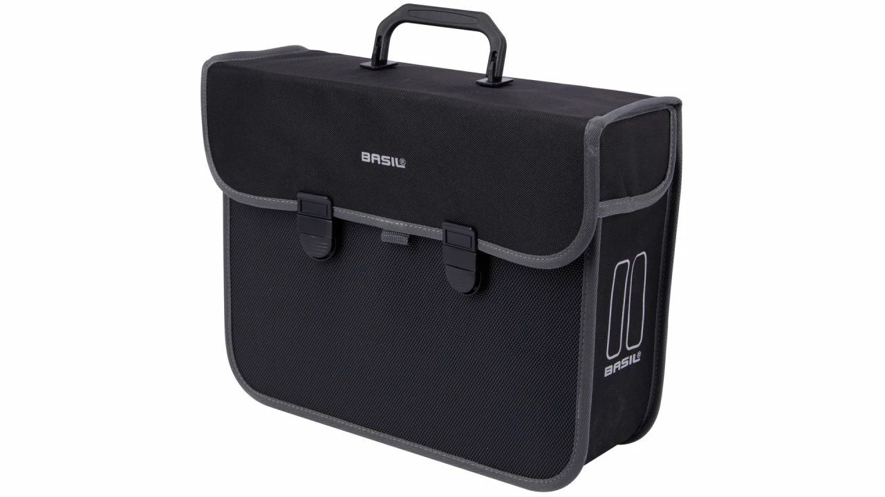 Diese schwarze abnehmbare Tasche von BASIL lässt sich mit Hilfe von Kunststoffhaken an der Seite des Gepäckträgers befestigen. Mit einem Inhalt von 13 l ist die Malaga ideal fürs Einkaufen gehen. Auch für eine Fahrradtour in der Umgebung ist die Tasche eine tolle Erfindung, da sich ein Lunchpaket oder Regenkleidung darin verstauen lässt. <br><br>Selbstverständlich lassen sich darin auch andere Arten von Gepäck in dieser Fahrradtasche transportieren. Es hängt ganz davon ab, wofür man eine einzelne Fahrradtasche gebrauchen will, nichtwahr? Die Malaga ist mit doppelten Reflektorstreifen an der Seite der Tasche versehen. Hiermit fällt man auch abends während seiner Fahrradfahrt auf. <br><br>Darüber hinaus sind die Seitenklappen mit einem Gewicht verstärkt, wodurch Wasser keine Chance bekommt, in die Tasche einzudringen. Die Fahrradtasche lässt sich leicht mit Hilfe eines Klickverschlusssystems öffnen und schließen.