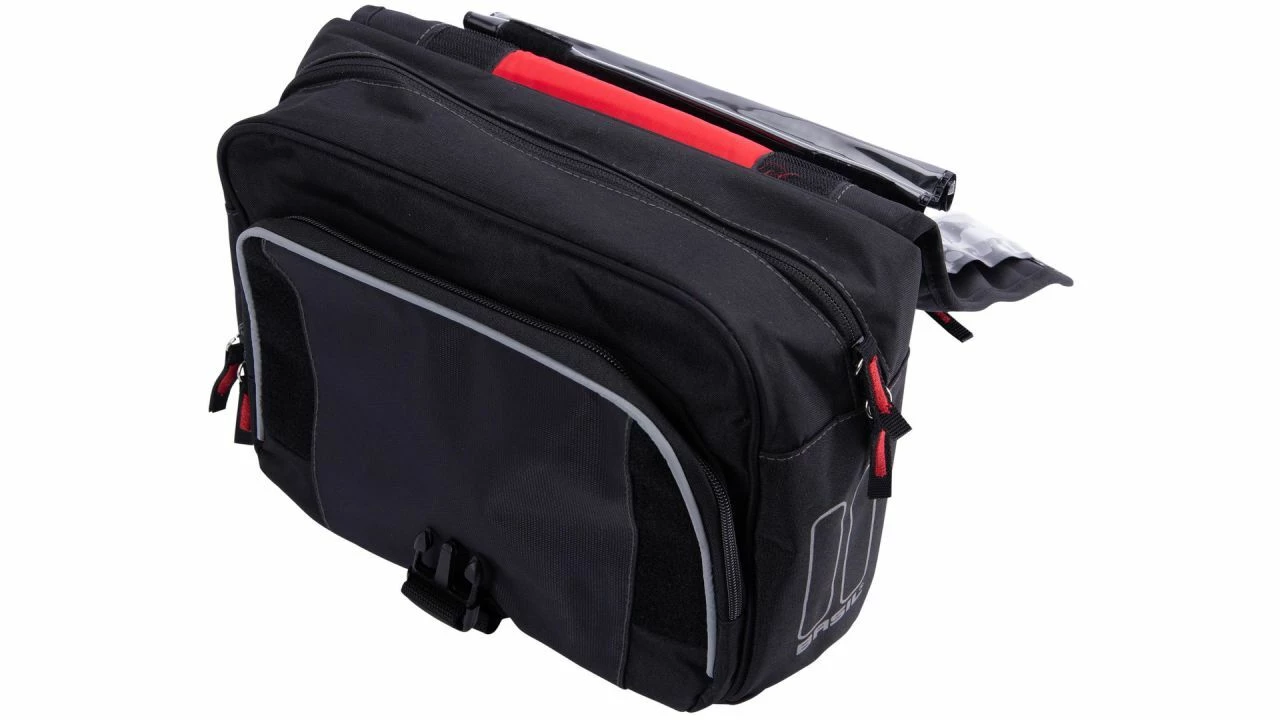 Auffällig, modern & sicher vor Regen<br>Die Sport Design von BASIL ist eine moderne Lenkertasche, die man auf einfache Art und Weise am Lenkrad montiert. Diese auffällige Fahrradtasche ist eine Bereicherung für jeden, der sich gerne das Fahrrad schnappt. <br><br>Eine Tagestour mit dem Fahrrad oder ein Fahrradurlaub, mit dieser Lenkertasche hat man alle wichtigen Dinge dabei. Da die Tasche am Lenker befestigt wird, sind alle Sachen sicher im Blickfeld. Dank des Schultergurtes lässt sich die Tasche leicht mitnehmen. Praktisches Detail: Die Tasche wird mit einem abnehmbaren transparenten Fach, zum Beispiel für eine Karte oder ein Tablet, geliefert. Darüber hinaus liegt noch eine Regenhülle bei, womit die Gegenstände in ihr immer trocken am Bestimmungsort ankommen. <br><br>Weiterhin ist die Lenkertasche mit verschiedenen Innenfächern sowie einem Vorderfach ausgestattet. Die Lenkertasche Sport Design von BASIL hat einen Gesamtinhalt von 8 l. Die Tasche eignet sich für das BASIL BasEasy-System, das nicht enthalten ist, sondern separat erworben werden muss. Durch die extra Reflektoren an der Lenkertasche ist man auch in Dunkelheit besser sichtbar.