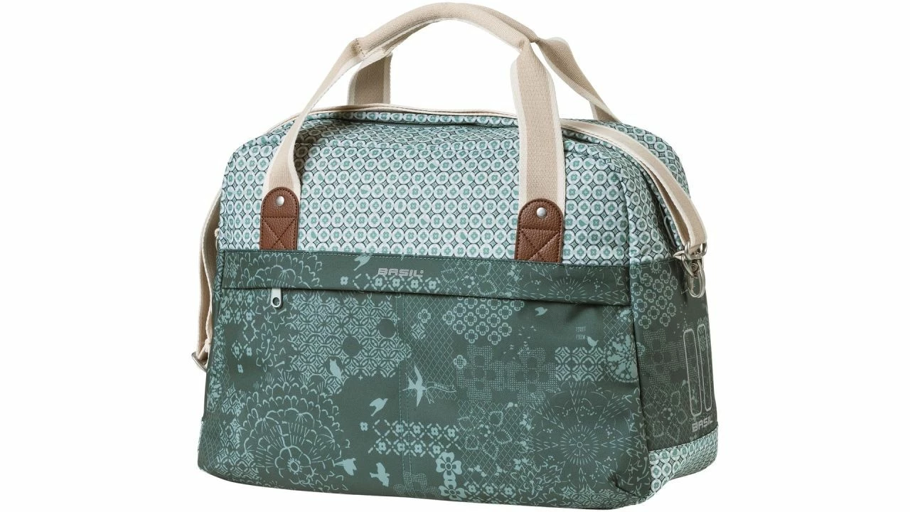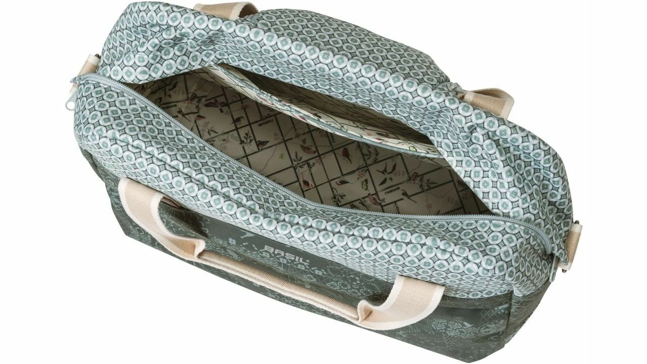 Bei der Bohéme von BASIL handelt es sich um eine Fahrrad-Schultertasche, die stilvoll aussieht und sehr hilfreich ist. Sie hat einen Inhalt von 18 l. Der böhmische Print bringt dabei eine elegante Ausstrahlung mit.<br><br>Dank des praktischen Hook-On-Systems ist die Tasche für viele Gepäckträger (auch an E-Bikes) geeignet. Das Befestigen gelingt spielend leicht. Unterwegs fällt das System gar nicht auf, denn es ist auf schöne Art und Weise mit einem separaten Reißverschlussfach verdeckt.<br><br>Die Tasche verfügt über zwei Henkel und einen abnehmbaren Schultergurt, wodurch sie sich auch leicht als Schulter-, Hand- und Fahrradtasche nutzen. Ob es nun um eine Radfahrt zum Supermarkt oder um eine Verabredung zum Mittagessen geht: Diese Fahrradtasche komplettiert Ihren (Boho-)Look und macht das Mitnehmen von Gegenständen einfacher.<br><br>Die Bohéme hat einen Innenbeutel und ist mit einer stabilen Innenfütterung sowie Details aus Kunstleder ausgestattet. Durch das wasserabweisende Polyester bleibt der Inhalt auch bei einem kleinen Regenschauer trocken. Darüber hinaus sorgen die Reflektordetails an beiden Seiten dafür, dass man bei Dunkelheit besser zu sehen ist.