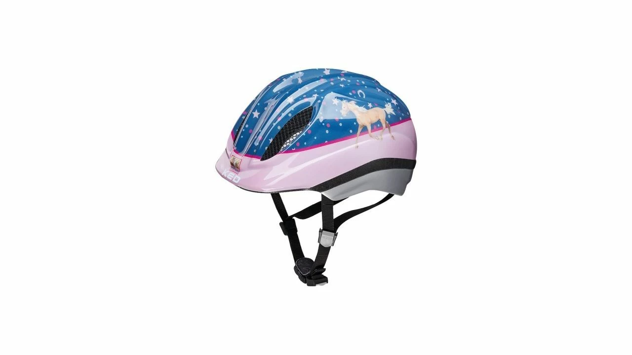 Der Pferdefreunde von BIKE FASHION ist ein Kinderhelm für den täglichen Weg zur Schule. Er ist für Kopfumfänge von 46 cm – 49 cm geeignet. Ist er dennoch zu eng oder ein wenig zu weit lässt er sich per Quicksafe und Quickstopp genau auf die Kopfform deines Kindes anpassen. <br>Für die optimale Temperierung bei anstrengenden Touren sorgen die 5 Belüftungsöffnungen. <br>Ein Steckverschluss hält den Kinderhelm verschlossen.