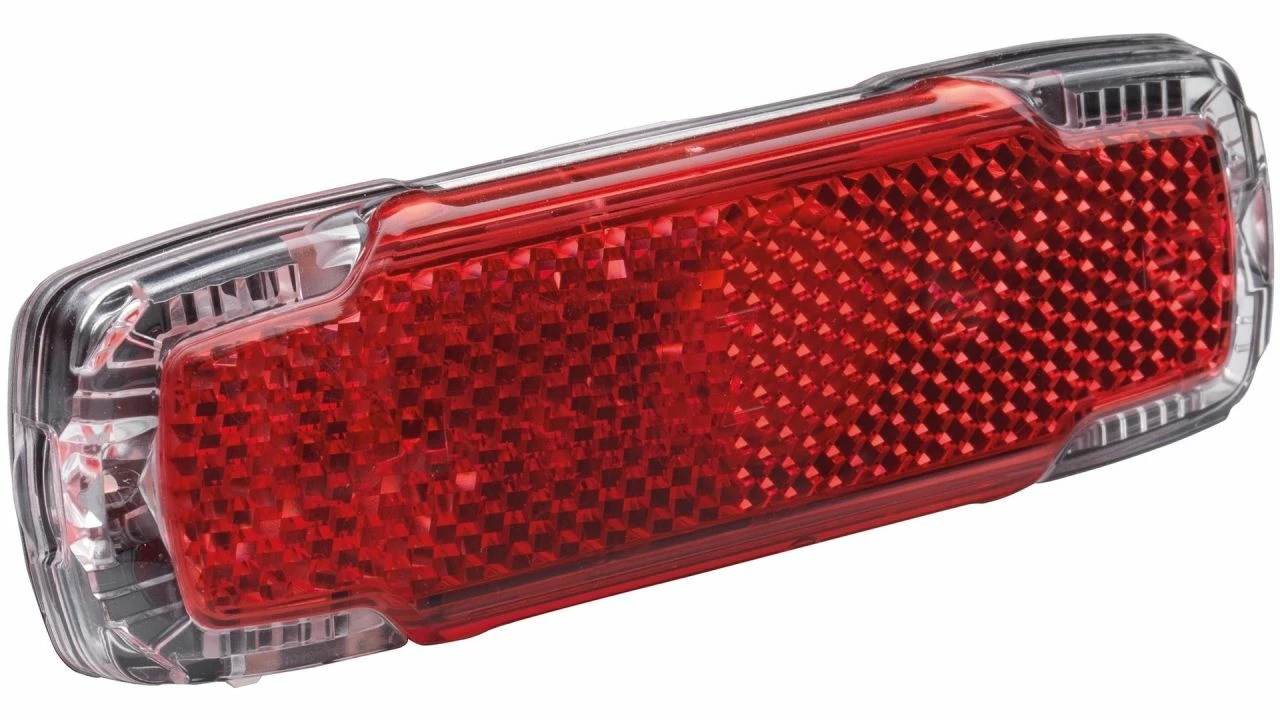 In der Dunkelheit leuchten die zwei C-förmigen Klarglasschwünge links und rechts als helle Lichtbänder, befeuert durch zwei Hochleistungs-LEDs.<br>Gewicht: 62 g. Abmessungen: 19 x 106 x 34 mm.<br>Integrierter Lithium-Akku, aufladbar per USB. Wie alle Busch & Müller Rücklichter: StVZO-zugelassen.
