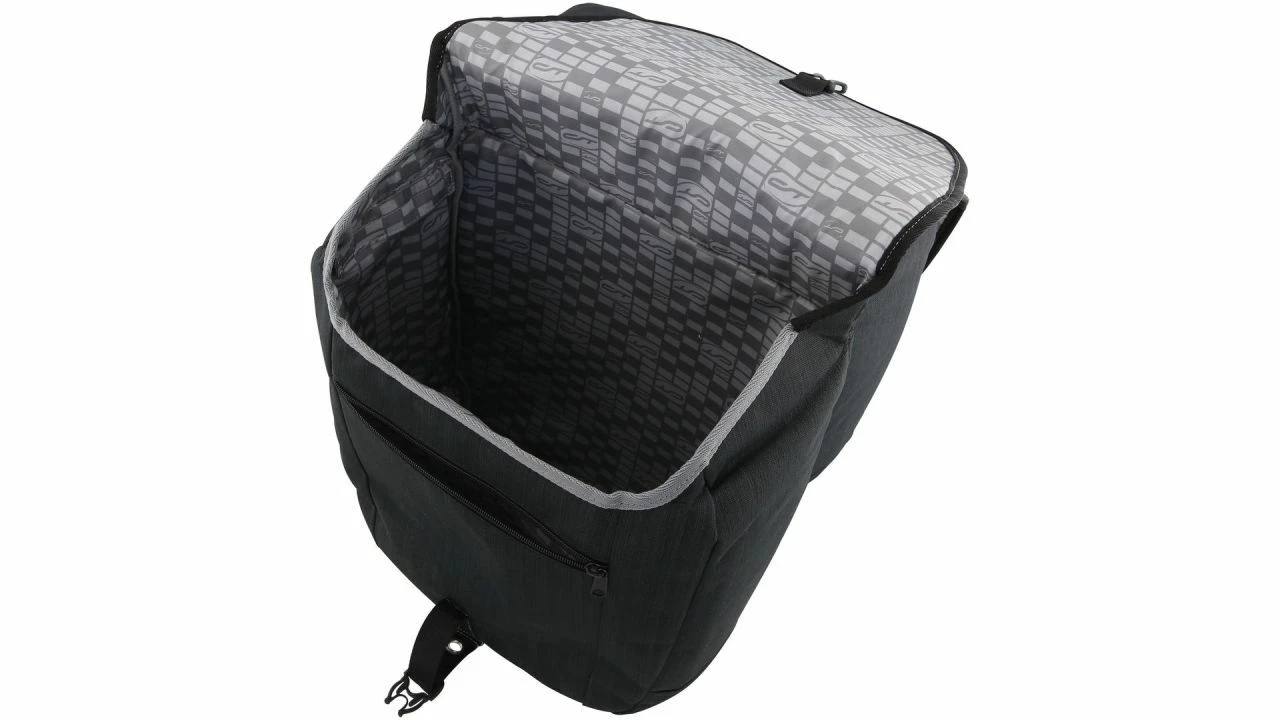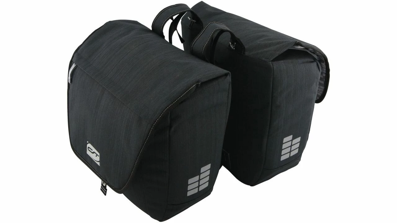 Viel passt hinein und fällt wenig ins Gewicht: Die sportliche Doppelpacktasche Neo.Double XL bringt viele Vorteile, wenn es darum geht, Gepäck mit dem Fahrrad mitzunehmen. Wer das Rad als tägliches Transportmittel nutzt oder auch längere Touren unternimmt, wird mit dieser geräumigen Tasche glücklich. Kleidung. Proviant und Werkzeug lassen sich mit der Neo.Double XL hervorragend mitnehmen.<br><br>Buchstäblich größter Vorteil: das hohe Volumen von 33 l (2 x 16,5 l). Verteilt auf 34 cm Länge, 15 cm Breite und 35 cm Höhe bietet die Fahrradtasche somit besonders viel Platz. In je einem großem Hauptfach und 2 kleineren Reißverschlussfächern an Front und Deckel lässt sich alles platzsparend einpacken, was man mitnehmen möchte. <br><br>Dank des wasserabweisenden Polyesters, aus dem diese Fahrradtasche besteht, bleibt auch bei Wind, Sturm und Regen alles trocken.<br>Zur Sichtbarkeit und damit zur Sicherheit tragen die reflektierenden Elemente dieser Doppelpacktasche bei. Somit lässt sie sich auch während der dunklen Stunden mit einem guten Gefühl mitnehmen. <br>Schließlich bereichern die stilvoll in Grau gehaltenen Farbakzente an den Nähten und Reißverschlüssen das Design dieser Fahrradtasche, die CONTEC mit einer schwarzen Grundfarbe geschmackvoll-dezent gestaltet hat. <br><br>Befestigen lässt sich diese Packtasche über Steckschnallen. Sie lässt sich damit problemlos am Gepäckträger montieren.<br>Ob nun für die Radtour oder für das Pendeln auf 2 Rädern: Die Doppelpacktasche Neo.Double XL von CONTEC ist ein idealer Begleiter, in den clever organisiert so einiges hineinpasst.