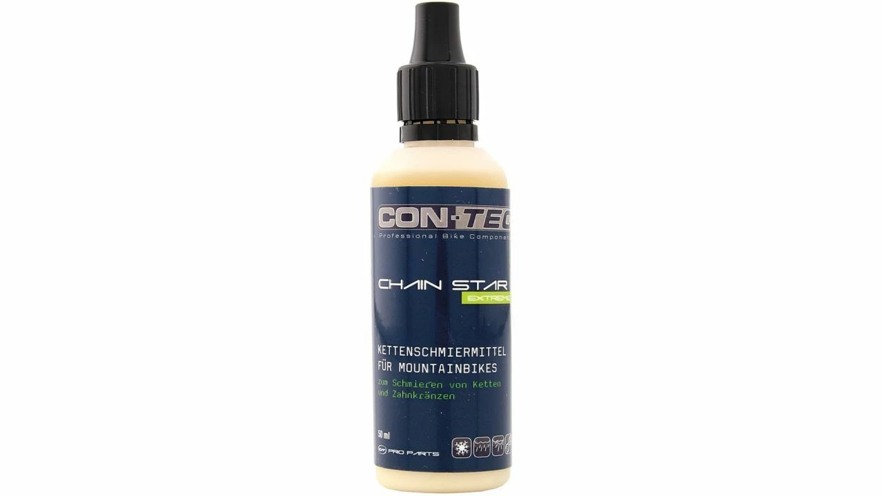 Die Kette ist ein wichtiges Bauteil des Fahrrads. Das CONTEC Kettenspray Chain Star Extreme ist ein Kettenfließfett zum Schmieren von Ketten und Zahnrädern. Das Fett hat ein gutes Fließverhalten und einen Korrosionsschutz. <br><br>Es ist für O-Ringe geeignet und verdrängt Feuchtigkeit. Gegenüber dem regulären Chain Star Normal hat es einen höheren Gehalt an adhäsiven Komponenten. Das wasser- und wasserdampfbeständige Fett ist in den Größen 50 ml (Tropfflasche) und 200 ml (Spraydose) erhältlich. Das Kettenspray ist z. B. für MTB-Ketten ideal.