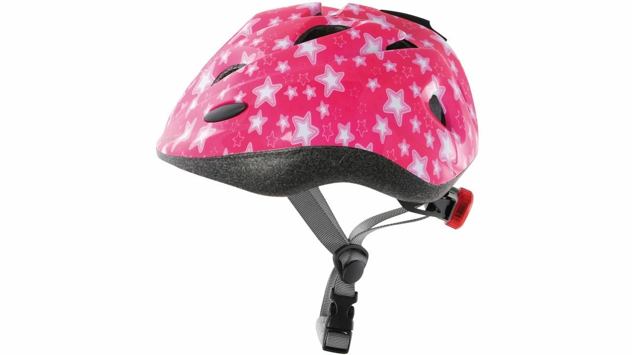 Welches kleine Mädchen liebt nicht schöne Sternenmuster? Der Kinderhelm Starlet von CONTEC ist stilvoll genau in diesem Design gestaltet und sorgt somit dafür, dass der Nachwuchs ihn gleich mit viel mehr Begeisterung aufsetzt. Schließlich geht es, wenn das Design dem Mädchen gefällt, nicht darum, einen Helm tragen zu müssen, sondern zu wollen.<br><br>Dabei steht die Sicherheit natürlich im Vordergrund. So garantiert ein zuschaltbares Blinklicht an der Rückseite des Helms optimalen Schutz bei Dunkelheit. Ein integriertes Anti-Insekten-Netz verhindert unangenehme Begegnungen mit stechfreudigen Tieren, ein Visier bietet Schutz vor der Sonne. <br><br>Einen kühlen Kopf bewahrt der Nachwuchs auch: 11 Belüftungsöffnungen machen die Fahrt mit den leichten und praktischen Helmen noch angenehmer. Zudem sitzt der Helm angenehm und ohne unnötig hohes Gewicht auf dem Kopf des Kindes. Das garantieren die leichte EPS-Innenschale sowie die ebenfalls leichte Outmold-Mikroschalen-Kunststoffkonstruktion. Der Helm bietet den perfekten Schutz für stilbewusste kleine Mädchen.