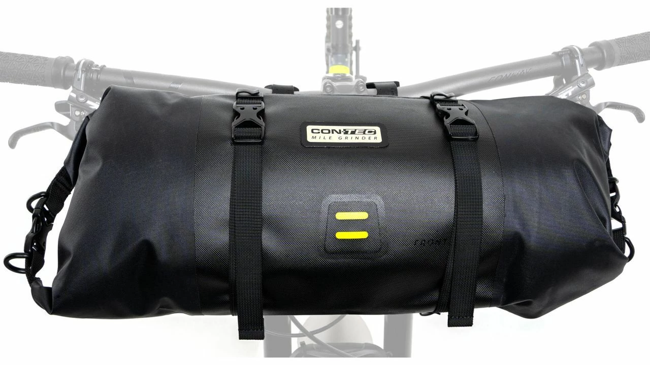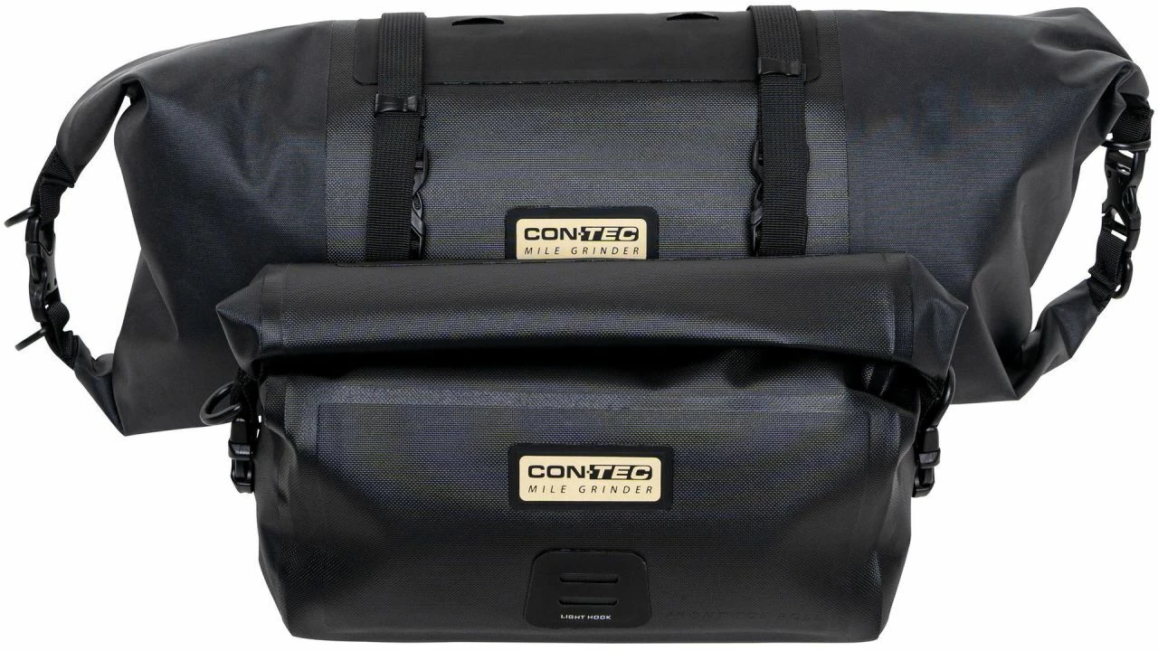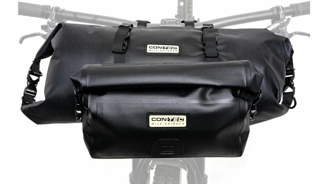 Du brennst für Bikepacking oder willst es einfach mal ausprobieren, aber dir fehlen noch die passenden Taschen? Das Mile Grinder Front Lenkertaschen-Set von CONTEC kommt da gerade Recht, vor allem, wenn du dir noch unsicher bist, wie große Taschen du tatsächlich benötigst. Das Set besteht nämlich aus zwei unterschiedlich großen Taschen, die du entweder beide am Lenker befestigen kannst oder je nach Bedarf die größere (8 Liter) oder die kleinere (4 Liter) einzeln. Das funktioniert spielend leicht über die mitgelieferten Riemen.<br><br>Gerätst du auf deinen Touren in Regengebiete musst du dir keine Gedanken um deine Habseligkeiten machen. Die Mile Grinder Front Taschen sind aus TPU-beschichtetem Nylon gefertigt und somit wasserdicht. Die Rolltopverschlüsse jeweils an den Seiten sorgen dafür, dass kein Wasser eindringen kann. Mit ihrem lässigen Design sind die Lenkertaschen nicht nur praktisch für Bikepacking-Abenteuer, sie machen auch eine gute Figur im Alltag, denn mit dem Trageriemen kannst du die kleine Tasche auch mal schnell über die Schulter hängen, wenn es Zeit für eine Pause in einem schönen Café ist.