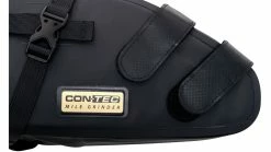 Die Mile Grinder Back 10 Satteltasche von CONTEC ist dein auf volle Stabilität ausgelegter Begleiter, wenn du mal wieder zu einem Bikepacking-Abenteuer aufbrichst. Die sehr großvolumige Tasche bietet 10 Liter Stauraum, um dein Reisegepäck wie Wechselkleidung oder Werkzeug problemlos mitzunehmen. Der flexible Rollverschluss sowie einige Kompressionsriemen lassen sich so einstellen und festzurren, dass dein Gepäck möglichst wenig hin und her rutscht, vor allem, wenn es auch mal durch grobes Terrain oder über unebene Waldwege geht.<br><br>Die Mile Grinder Back 10 kannst du mit Riemen ganz einfach an der Sattelstütze deines Bikes befestigen. An den Kontaktstellen zwischen Stütze und Riemen befinden sich rutschfeste Befestigungen, damit in erster Linie die Sattelstütze ohne Kratzer davonkommt und die Tasche im Gelände nicht verrutscht.<br><br>Gerätst du mal in einen Schauer ist das für die Satteltasche kein Thema, denn sie ist aus wasserdichtem Polyester und PVC gefertigt. Deine Regenjacke hast du für solche Fälle auch immer schnell griffbereit, denn die kann am Schlaufenzug an der Taschenoberseite fixiert und bei Bedarf schnell herausgezogen werden. Auch ein Rücklicht kannst du dort noch zusätzlich befestigen – optimal für trübe Sichtverhältnisse.