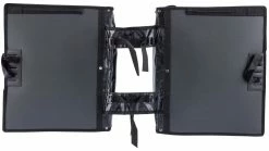 Diese robuste, doppelte Fahrradtasche besteht aus wasserabweisendem Bisonyl. Sie ist auch dank ihrer doppelten Nähte besonders stabil. <br>Um die Sicherheit im Dunkeln zu erhöhen, verfügt die Tasche außerdem über Reflektoren. Sie lässt sich über einen Klickschnallenverschluss leicht öffnen und schließen.