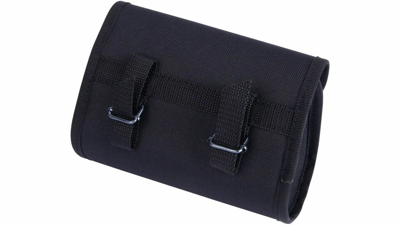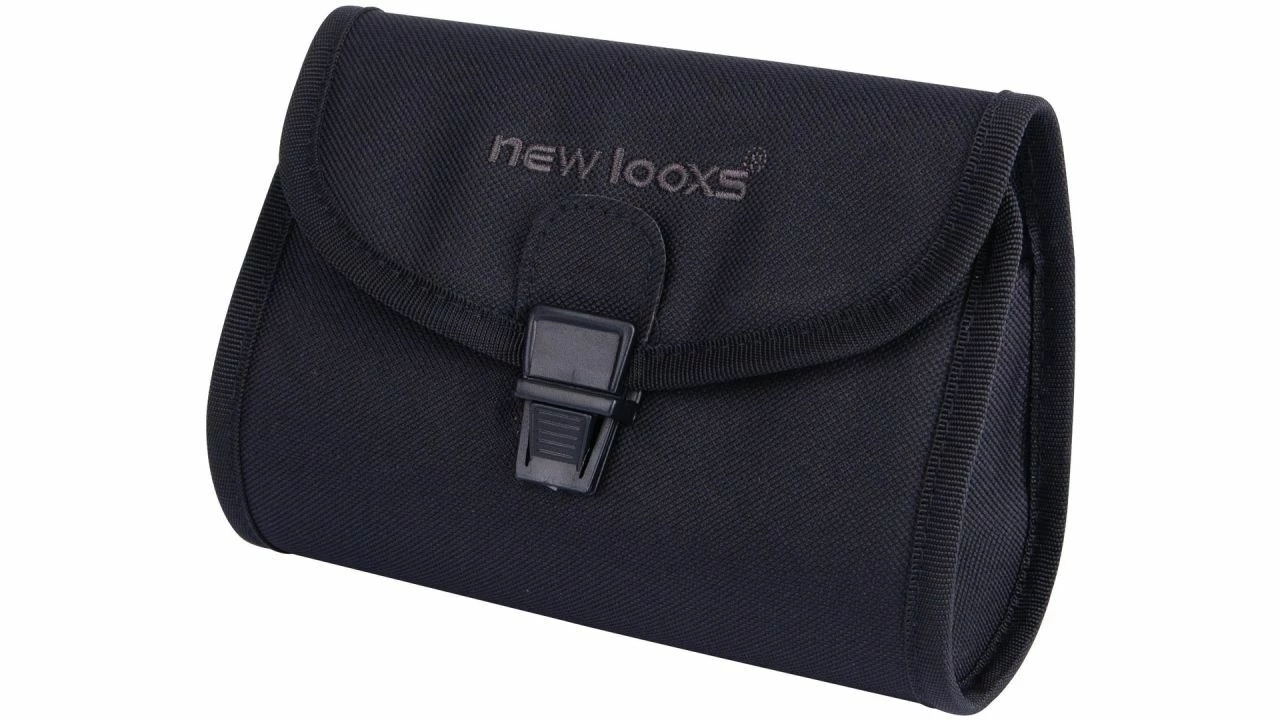 Diese Satteltasche von NEW LOOXS besteht aus wasserabweisendem Polyester. Sie lässt sich einfach mit den Riemen am Sattel befestigen. <br>Geschlossen wird die Fahrradtasche mit einer Einsteckschnalle.
