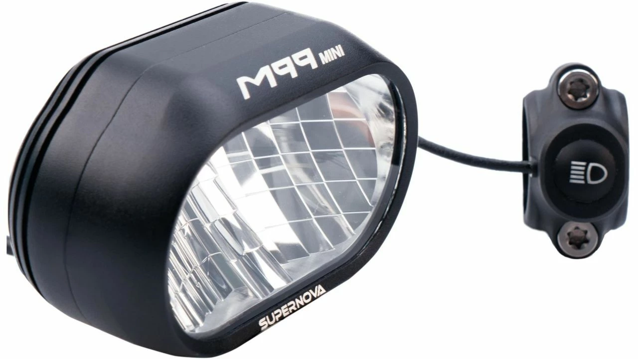 Der M99 Mini Pro-45 ist laut Hersteller SUPERNOVA der kleinste Scheinwerfer mit 280 Lux starkem Fernlicht für Schnelle Pedelecs (S-Pedelecs) bis 45 km/h. Wobei auch das normale Abblendlicht mit 250 Lux schon überaus hell ist. Der breite Spiegel wirft dazu das Licht von gleich zehn automotive LED immens breit auf die Fahrbahn. Damit sind auch schnelle Kurven auf der Straße oder auf dem Trail sicher ausgeleuchtet. Das Fernlicht strahlt bis 300 m in die Ferne und wird per Taste vom Lenker aus zugeschaltet. <br><br>Der M99 Mini Pro-45 wiegt inklusive Fernlicht-Taster 123 g, seine Maße betragen 31,8x78x50 mm (LxBxH). Damit konnte nach SUPERNOVA erstmalig die sogar für Motorräder geeignete Leistungsklasse in einem derartig kleinen Gehäuse umgesetzt werden. <br><br>Das Aluminiumgehäuse und die sensorgesteuerte LED-Dimmung sorgen für eine optimale Kühlung und damit für höchste Effizienz und Lebensdauer des Lichtsystems. Auch als Monkeylink Version erhältlich. Der Hersteller gibt auf den Scheinwerfer drei Jahre Garantie, auf alle Aluminiumteile sogar zehn Jahre.