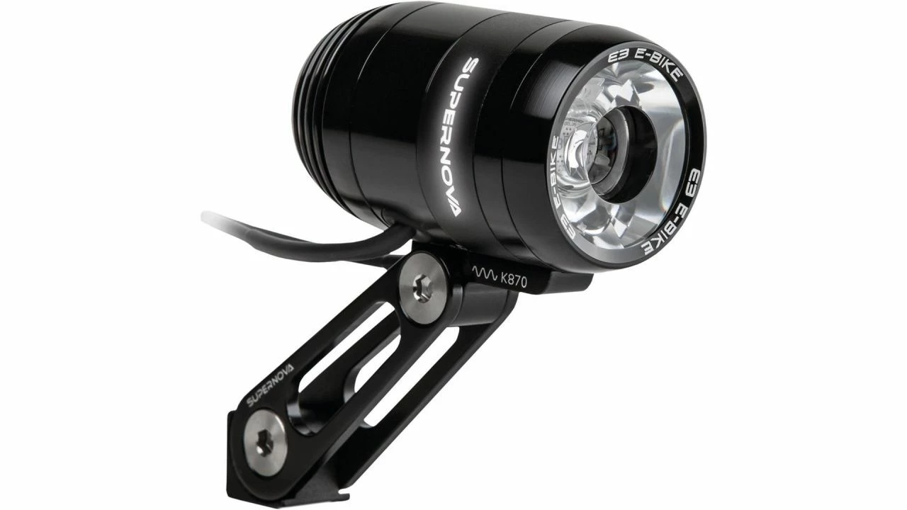 Der SUPERNOVA LED-Scheinwerfer V1260 kann alles und mehr, was man von einem modernen LED-Scheinwerfer für Pedelecs bis 25 km/h erwarten kann. Ein feiner Hingucker aber ist das seitlich strahlende SUPERNOVA-Logo, womit der Scheinwerfer sein klares Design nur fortführt und obendrein zur seitlichen Sichtbarkeit beiträgt. <br><br>Wobei aber die hohe Lichtleistung von 205 Lumen an sich im Straßenverkehr schon fürs deutliche Gesehenwerden sorgt. Und mit der Tagfahrlichtfunktion, die über die automotive Power LED gesteuert wird, nicht nur bei Nacht. <br><br>Beim aktuellen V1260 kommt die neue Terraflux 3-Linse zum Einsatz, womit der Scheinwerfer noch einmal um 15 Prozent heller leuchtet als zuvor. Das Gehäuse aus Aluminium vereint neben der Steuerung zwischen Tagfahr- und Nachtlicht, der LED und dem Spiegel auch einen speziellen Rücklichtanschluss für SUPERNOVA-Rücklichter, einen mechanischen An- und Ausschalter. Die Elektronik ist für nahezu alle Pedelec-Systeme kompatibel. Mit den Maßen 69x40x40 mm (LxBxH). Der V1260 wiegt ohne den Multimounthalter für Gabelkrone/Brücke 130 g.