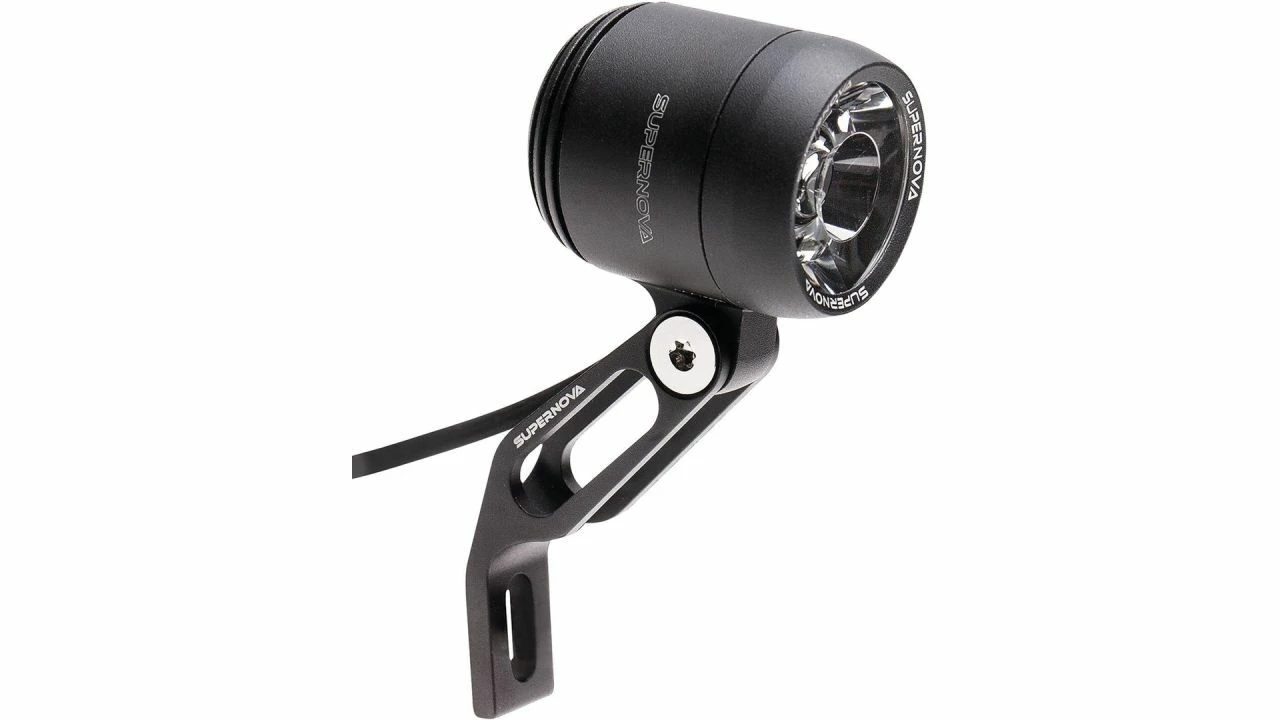 Er ist klein und kompakt, einfach hell und praktisch: Der SUPERNOVA LED-Scheinwerfer V521s für Pedelecs macht schon ausgeschaltet mit seinem zeitlos-puristischen Alu-Gehäuse eine gute Figur. Zum Ausschalten ist er aber fast zu schade, da er ohne eine zusätzliche LED über eine permanente, aber energiesparende Tagfahrlicht-Funktion verfügt. <br><br>Um die 235 Lumen, 15 Prozent mehr als der Vorgänger, auf die Fahrbahn zu werfen, arbeiten die bewährte Terraflux 3-Linse und die neue Hochleistungs-LED perfekt zusammen. <br><br>Das Innenleben im 49x41x41 mm (LxBxH) kompakten Gehäuse aus robustem Aluminium sorgt nicht nur für die Lichtsteuerung zwischen Tagfahr- und Nachtlicht. Eine Softstart-Funktion und der Überspannungsschutz ermöglichen eine lange Lebensdauer und die Kompatibilität mit nahezu allen E-Bikes bis 25 km/h. <br><br>Aber nicht nur an Pedelecs passt der Scheinwerfer. Für den Geländeeinsatz lässt er sich, gespeist von einer Powerbank über den USB-Anschluss, mit dem passenden Halter von SUPERNOVA ans Mountainbike montieren. Auf den SUPERNOVA LED-Scheinwerfer V521s gibt es fünf Jahre Garantie. Mit verschiedenen Haltern erhältich.